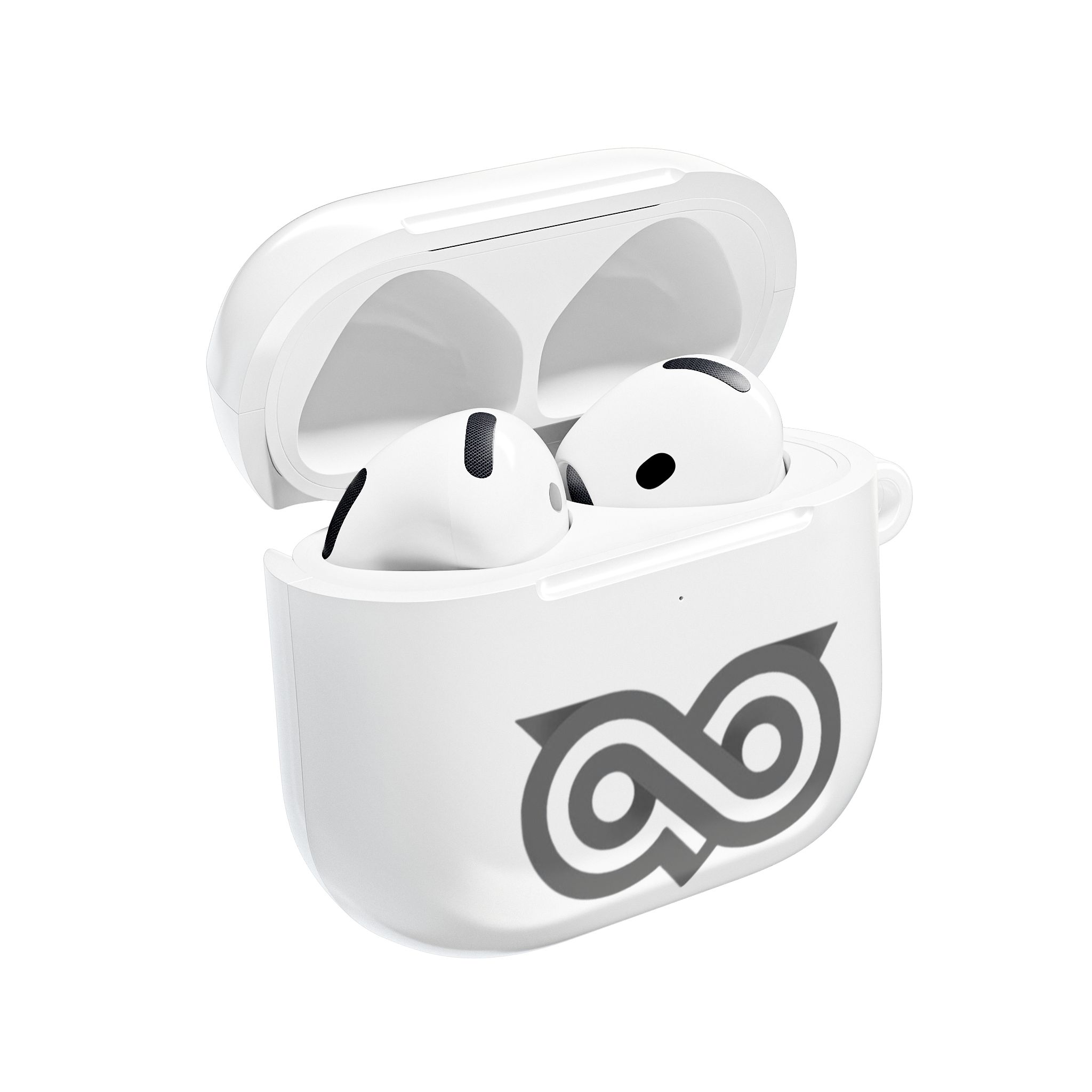 A slim, glossy AirPod case that brings quiet confidence to your everyday carry. The hard polycarbonate shell snaps on for strong protection against bumps and scratches while keeping wireless charging fully accessible. A subtle, modern emblem on the front gives the case personality without shouting—great for people who prefer clean, minimal design. Clip it to a bag or belt loop with the included carabiner and move through the day with something that protects your earbuds and reflects a calm, curated aesthetic.